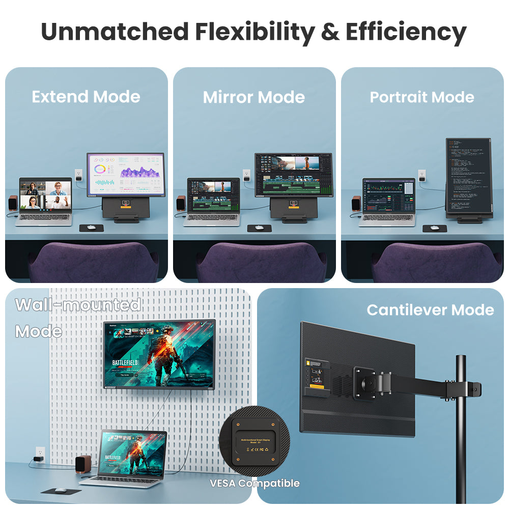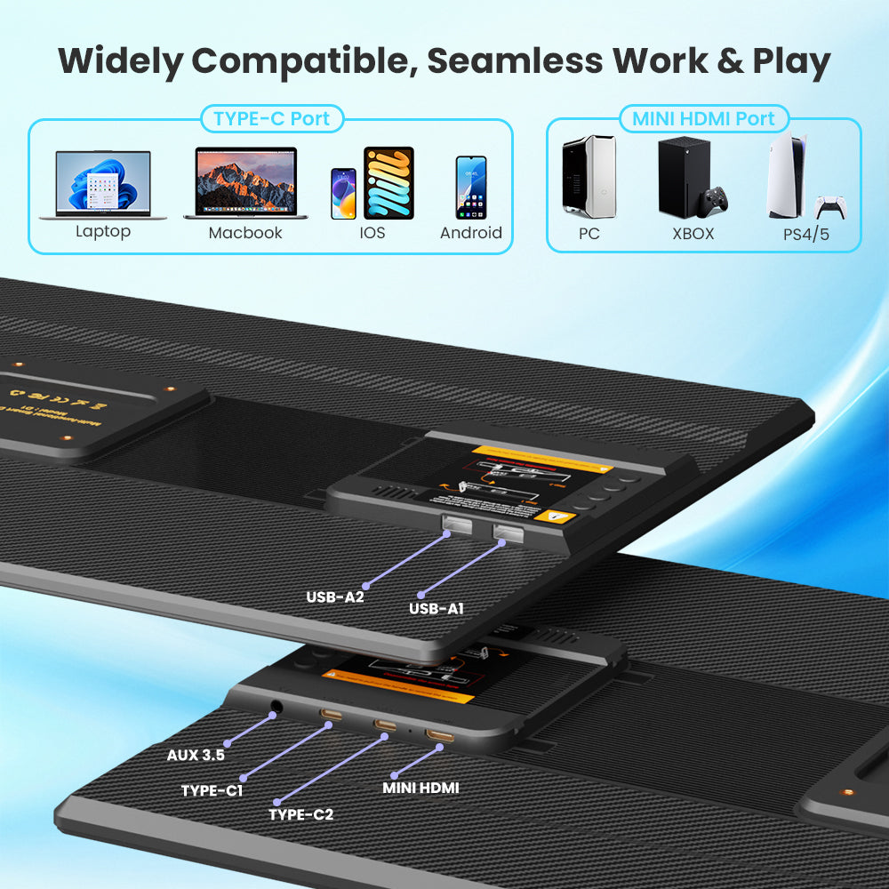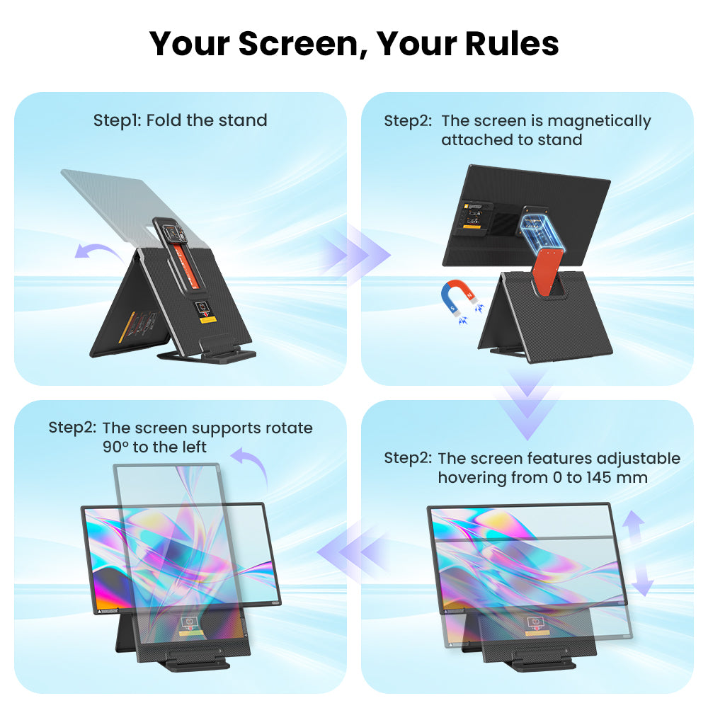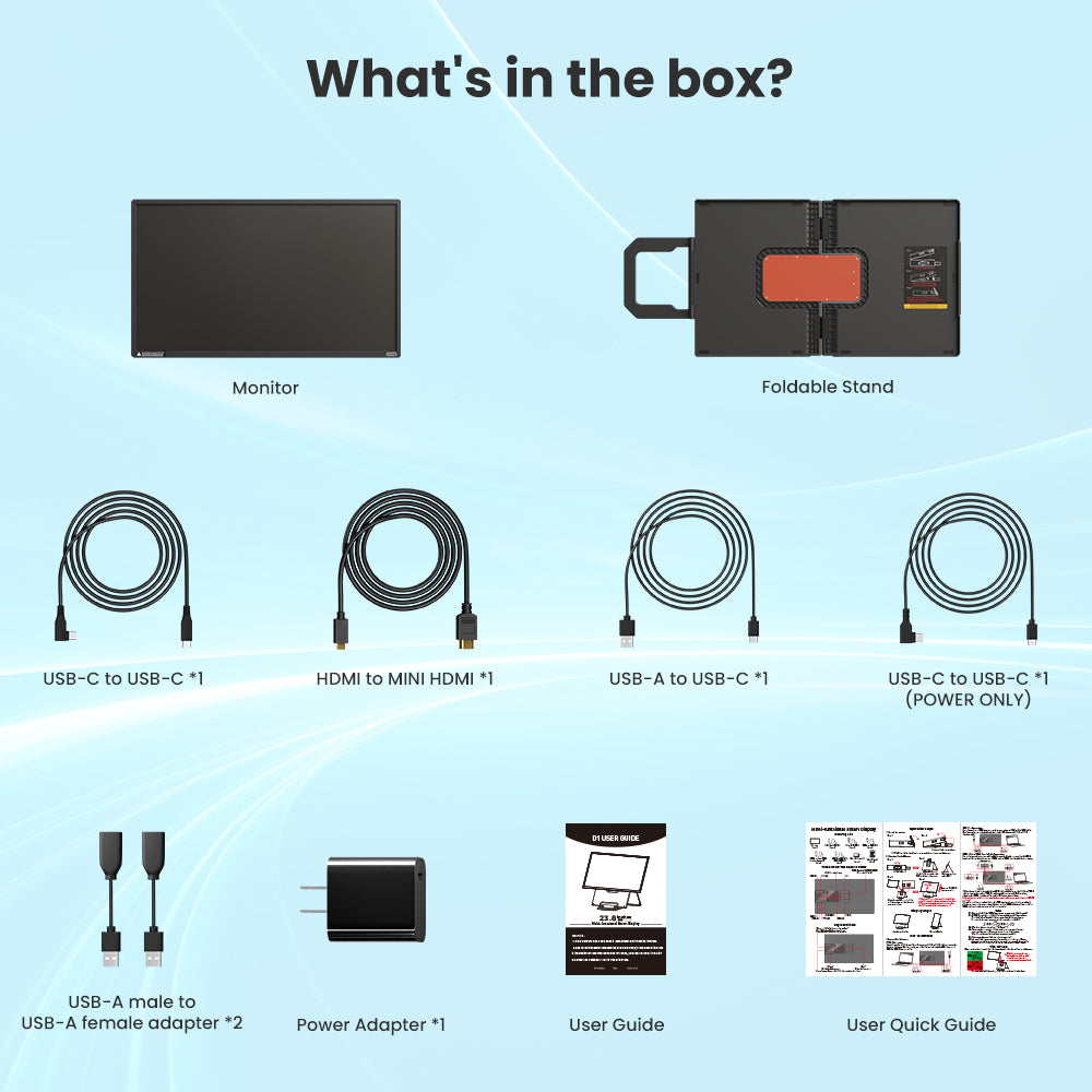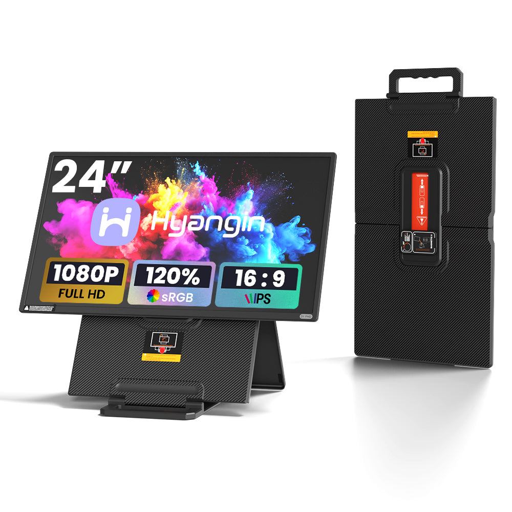 Hyangin D1 24" Portable Monitor (2025 Upgrade), 1080P FHD, 100Hz, 120% sRGB IPS, Adjustable Stand for Laptop, MacBook & Phones